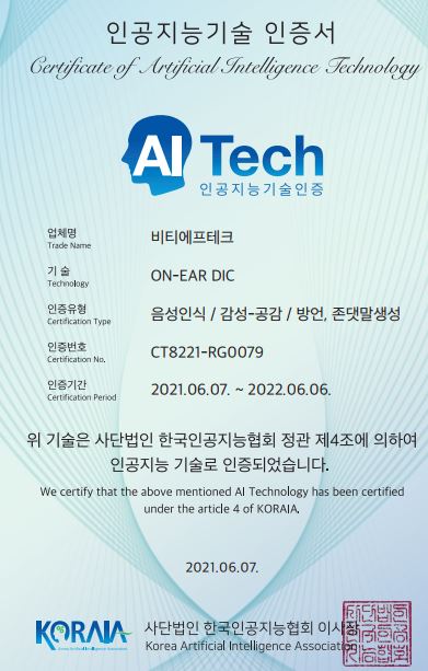 「음성 단말기의 음성 검증 및 제한 방법」 (특허번호 10-22774220000)
